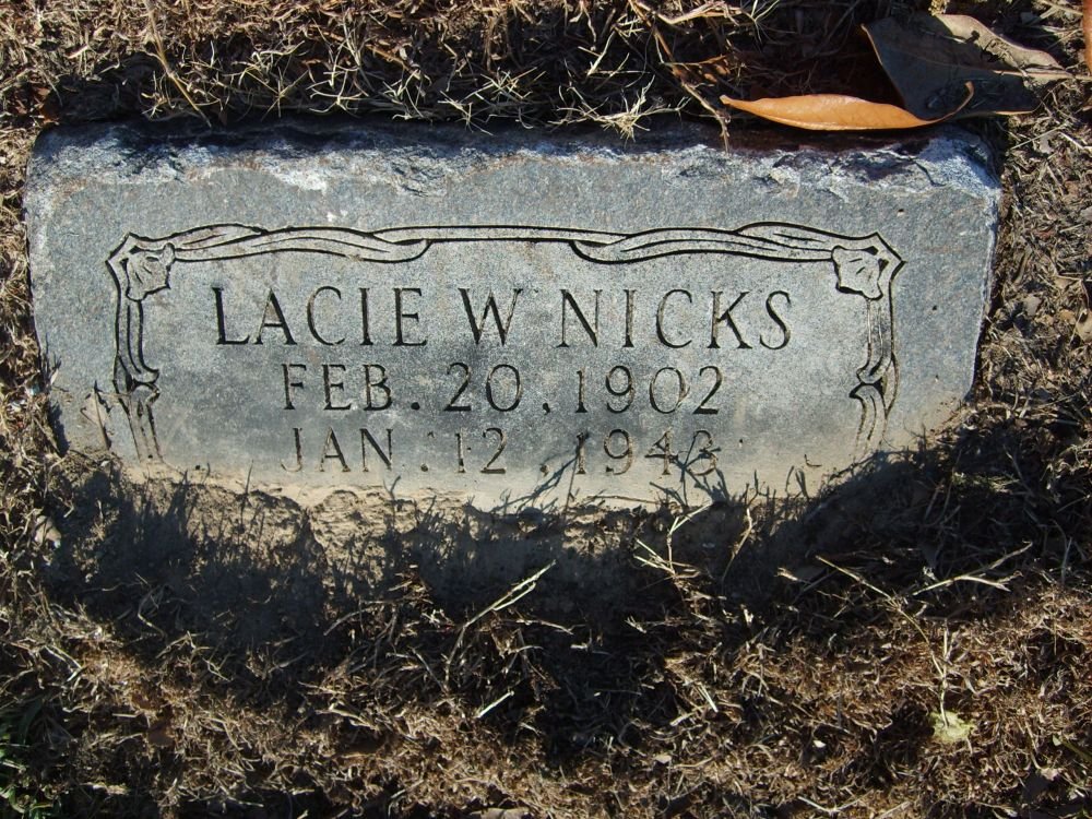 | Nicks, Lacie W. | 20-Feb-1902 | 12-Jan-1943 | | | Addition A | 2 | 5 |