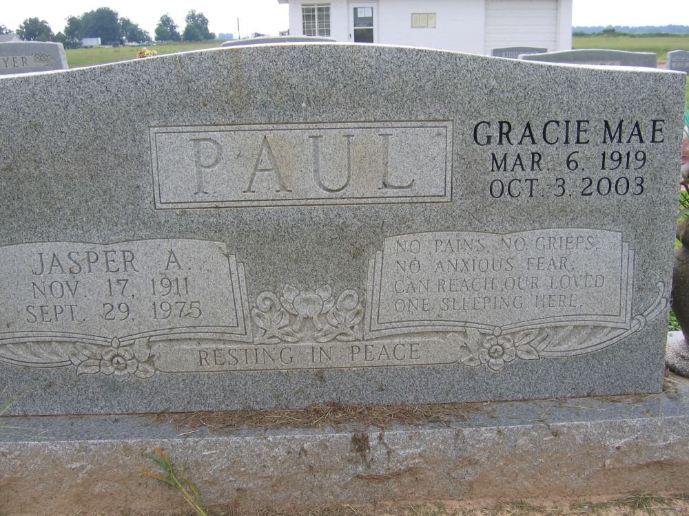 | Paul, Gracie Mae | 6-Mar-1919 | 3-Oct-2003 | Resting In Peace No Pains No Griefs No Anxious Fear Can Reach Our Loved One Sleeping Here | | Addition 5 | 17 | 66 |