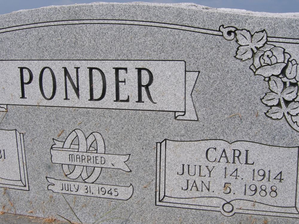 | Ponder, Carl | 14-Jul-1914 | 5-Jan-1988 | Married 21-Jul-1945 | | Addition 5 | 4 | 13 |