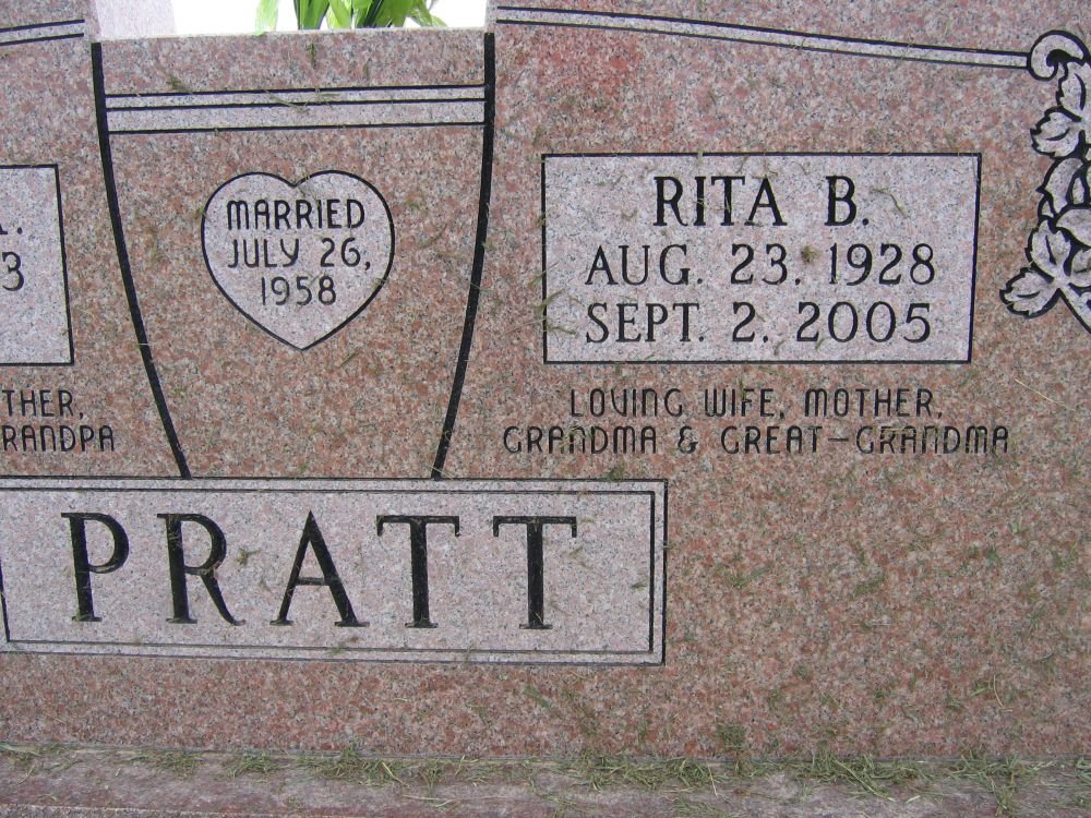 | Pratt, Rita B. | 23-Aug-1928 | 2-Sep-2005 | Loving Wife, Mother, Grandma & Great-Grandma Married July 26 1958 Our Children William Laurie Ricky Randy | | Addition 5 | 22 | 87 |