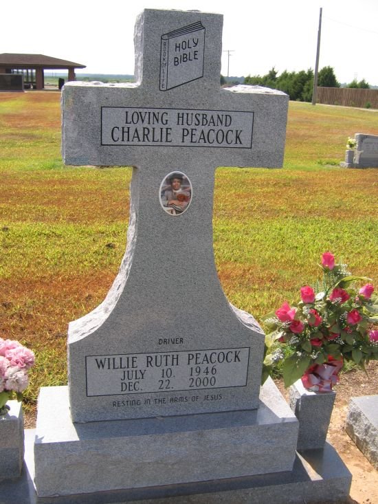 | Peacock, Willie Ruth | 10-Jul-1946 | 22-Dec-2000 | Loving Husband Charlie Peacock Driver Resting In The Arms Of Jesus | | Memorial Park 2 | 9 | 22 |
