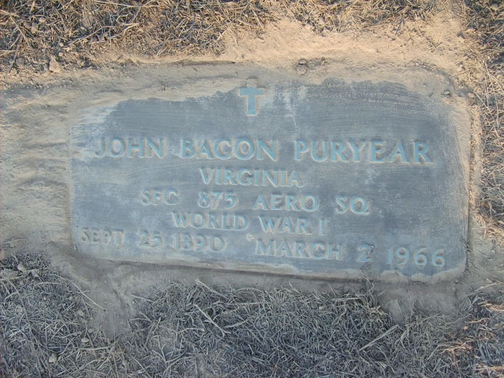 | Puryear, John Bacon | 25-Sep-1890 | 2-Mar-1966 | Virginia SFC 875 Aero Sq | World War I | Memorial Park 3 | 3 | 22 |
