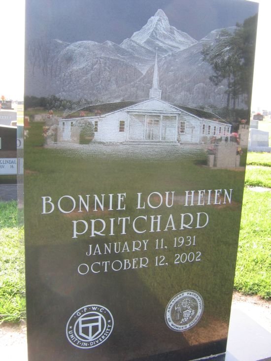 | Pritchard, Bonnie Lou Heien | 11-Jan-1931 | 12-Oct-2002 | Federated Women's Clubs Markers | | Memorial Park 5 | 2 | 30 |